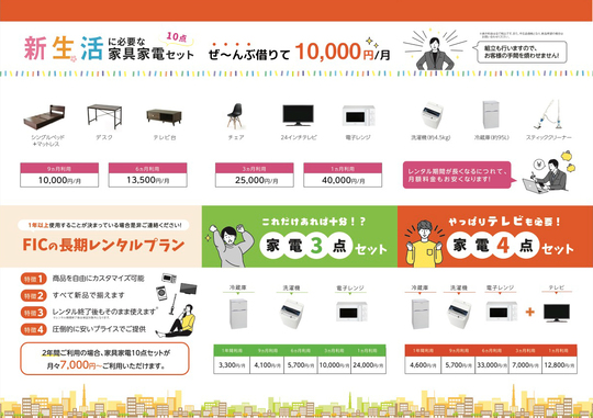 FICの家具家電レンタルサービスに興味をお持ちの方は、ぜひお気軽にお問合せ・ご相談ください。